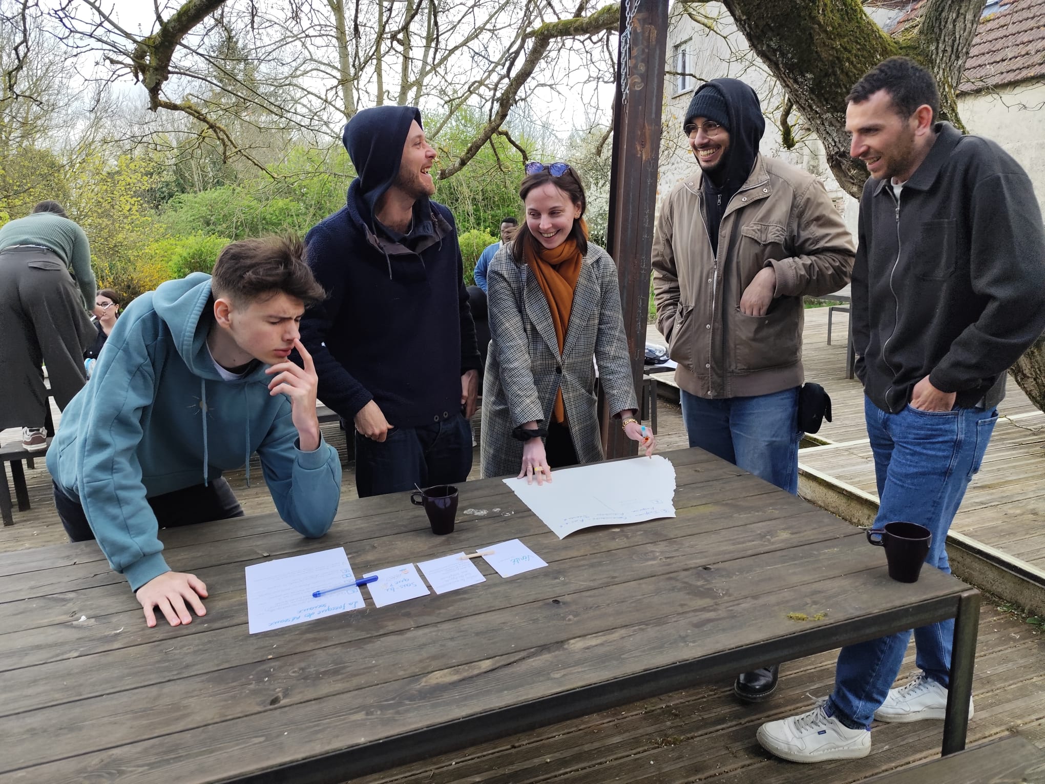 Nous actions phares : notre fresque participative, les groupes de parole, et l'application Beevi (réseau social alternatif).